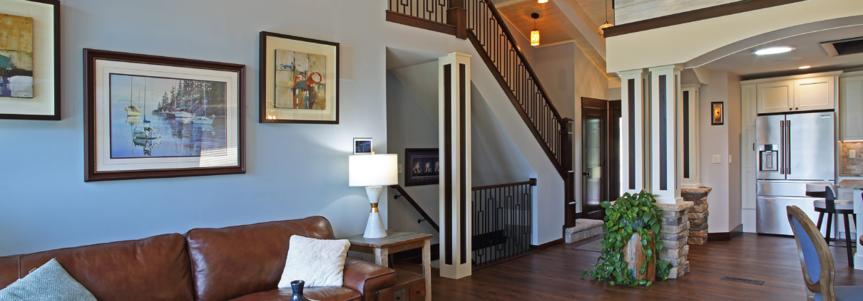 Our designers strategically and tastefully mixed both traditional, smooth, white painted millwork with rich stained woods in both smooth and rustic rough cut millwork textures for a rich, yet elegant look and feel. The result was a sophisticated look and a warm and inviting feeling, with a light, airy and clean look.