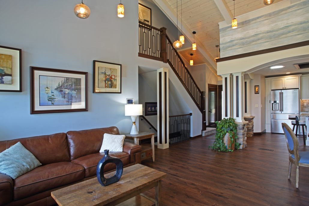 Our designers strategically and tastefully mixed both traditional, smooth, white painted millwork with rich stained woods in both smooth and rustic rough cut millwork textures for a rich, yet elegant look and feel. The result was a sophisticated look and a warm and inviting feeling, with a light, airy and clean look.